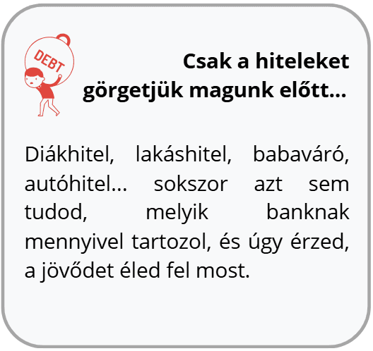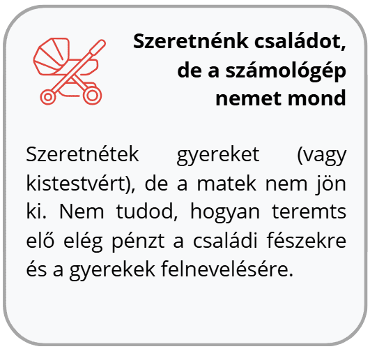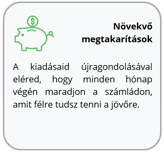 A legtöbb családnál már az első átvilágításnál találunk havi 20-50 000 Ft-ot, ami teljesen feleslegesen folyik el (elfelejtett előfizetések, rossz banki csomagok, impulzusvásárlások). Ha csak havi 30 000 Ft-ot találunk, az egy év alatt 360 000 Ft. Ez már önmagában többszörösen visszahozza a mentoring árát.